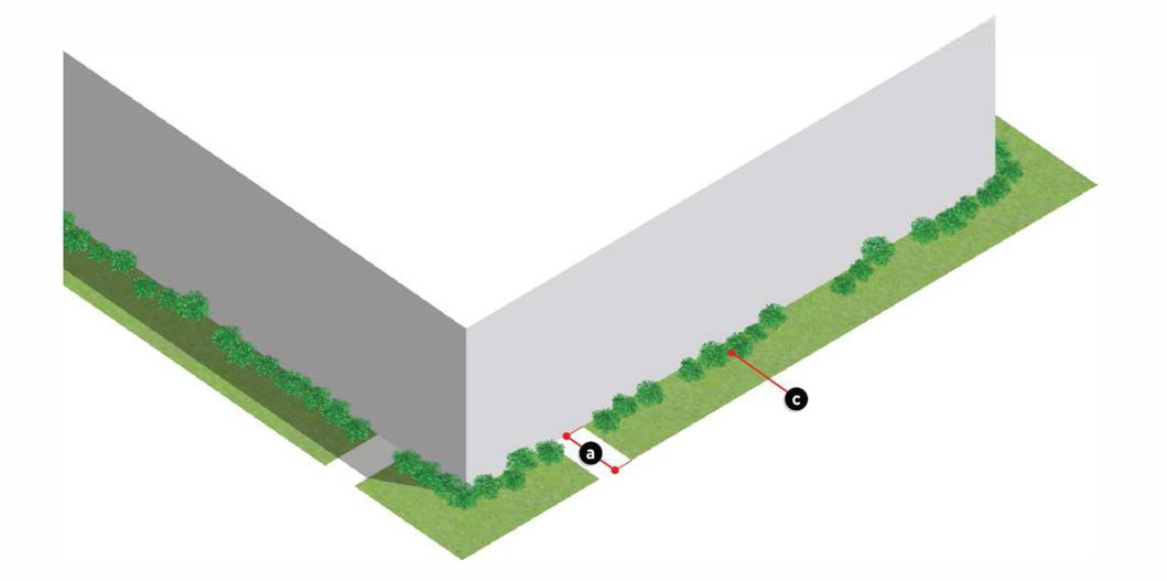 Shrubs shall be installed every three (3) feet along the exterior of the enclosure, with the exception of enclosure openings, to provide a softening effect.