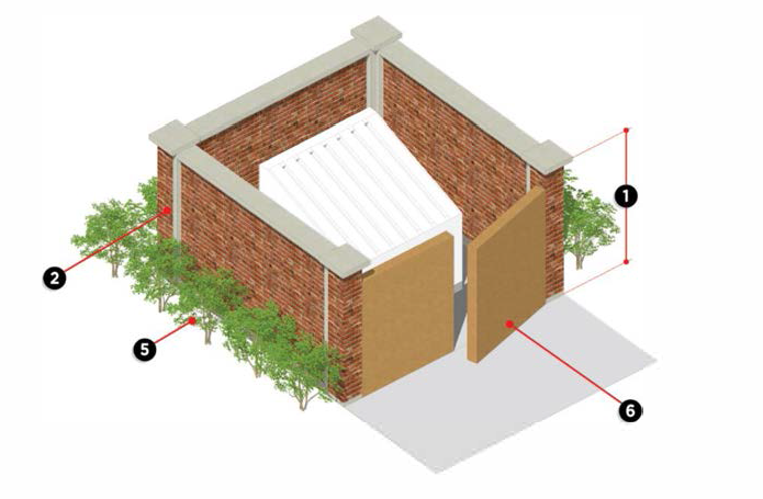 Enclosure structures shall be designed to protect the walls from damage by containers. Such protection may be provided by the use of barrier curbing, reinforced masonry walls, or other similar means.