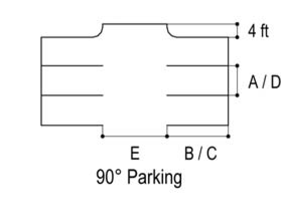 8.2.2. Dimensions. The design and dimensions of the parking area and spaces shall be in accordance with Table 8.2.2, as shown in Figure 8.2.2, and as follows:
