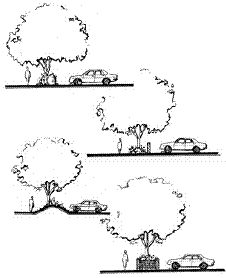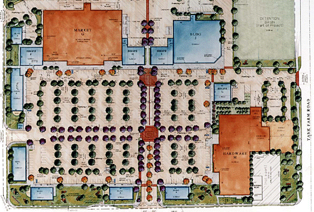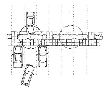 Parking areas should be designed so that cars and pedestrians are separated. The need for pedestrians to cross parking aisles should be minimized. Landscape islands and pedestrian walkways should be used to connect parking and building entries.