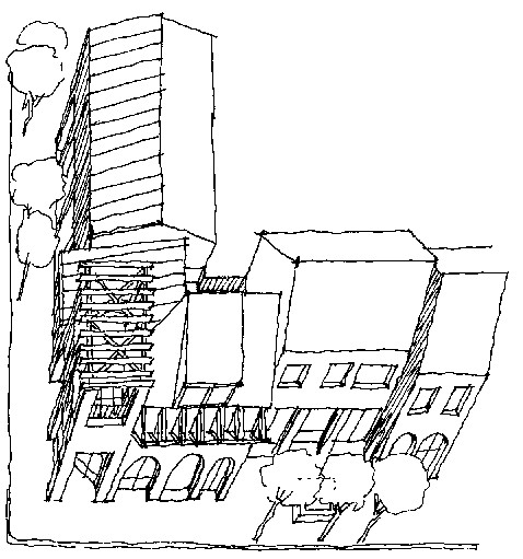 Corporate tenants should design their building to fit the scale and character of the community.