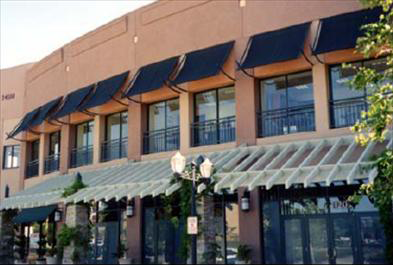 Awnings should not be wrapped around buildings in continuous bands. Awnings should only be placed on top of doors, windows, and other openings where arcades are not utilized.