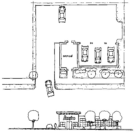 Where walls are used at property frontages to conceal storage and equipment areas, they should be designed to blend with the site's architecture.