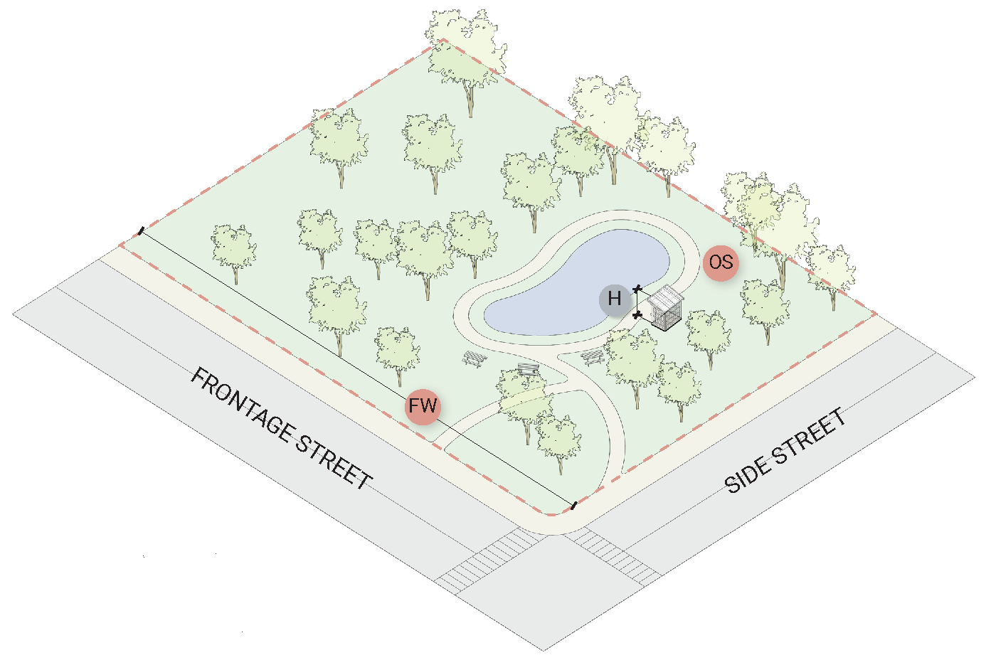 Figure 2.3. Example of Residential Corner Lot, including lot lines and lot dimensions.