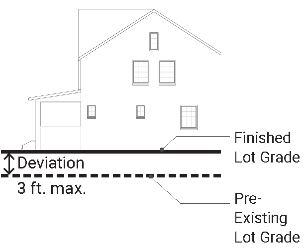 Lot deviation is the vertical change in elevation from the pre-existing lot grade to the finished lot grade.
