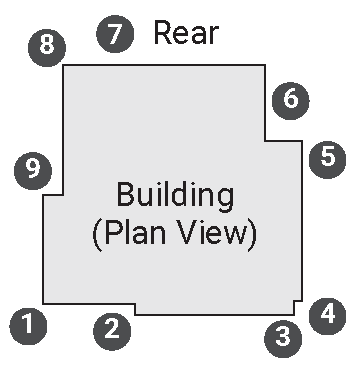 Lot deviation limits apply to a minimum of nine points along the building footprint generally as shown in Figure 2.9.