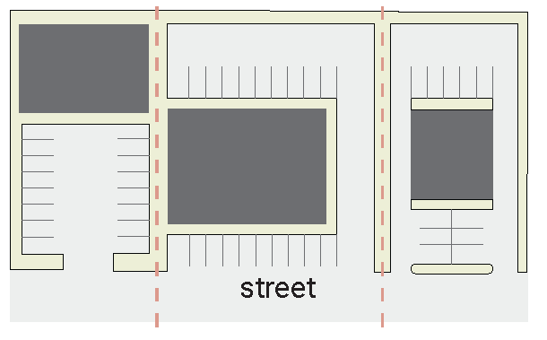 Figure 2.4. Example of Commercial Corner Lot, including lot lines and lot dimensions.