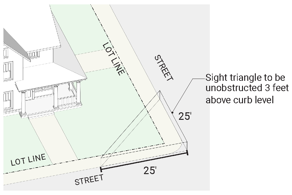 Corner Side Yard: Four (4) ft. max. (Note: See sight triangle § 18-467)
