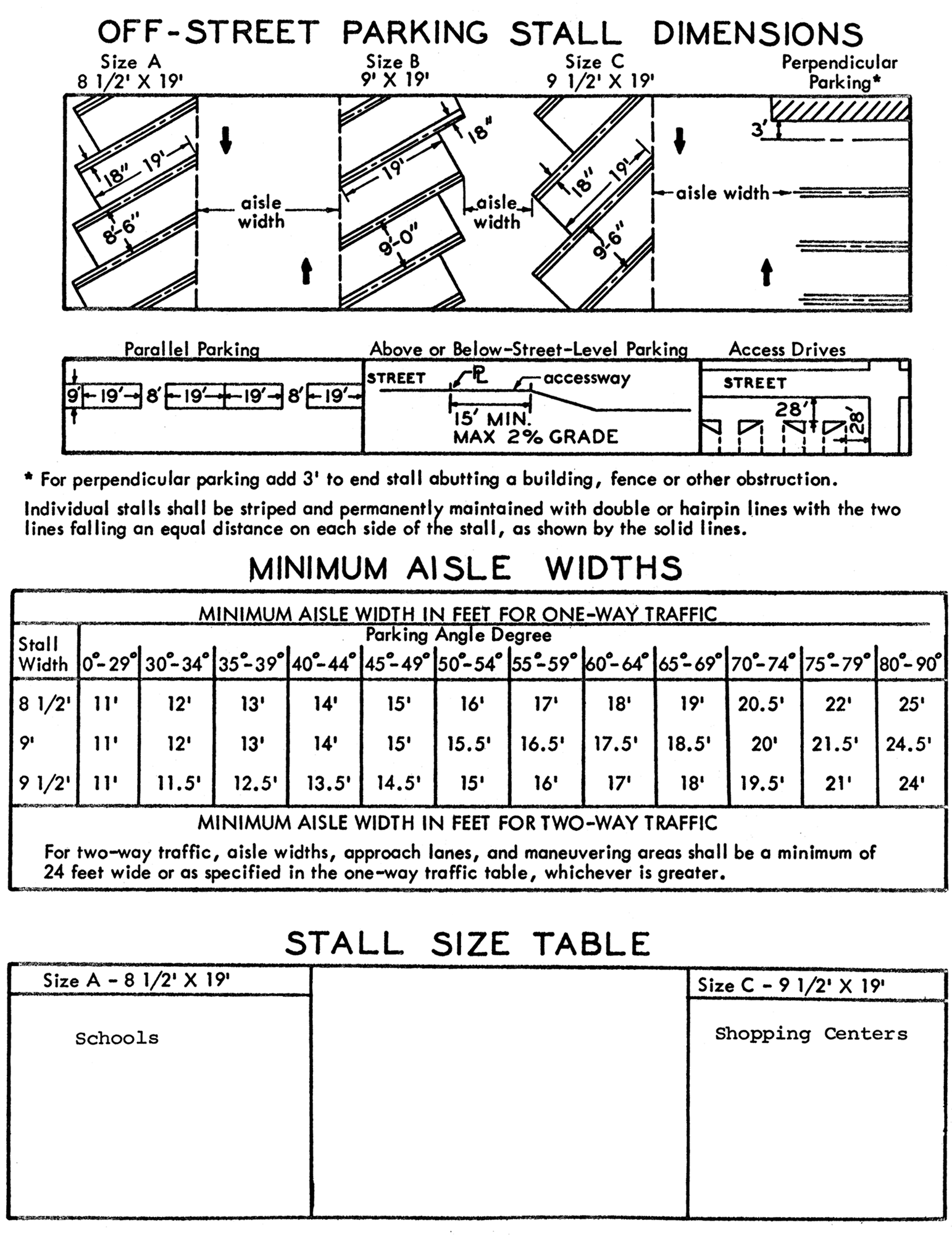 Off-Street Parking Stall Dimensions and Minimum Aisle Widths