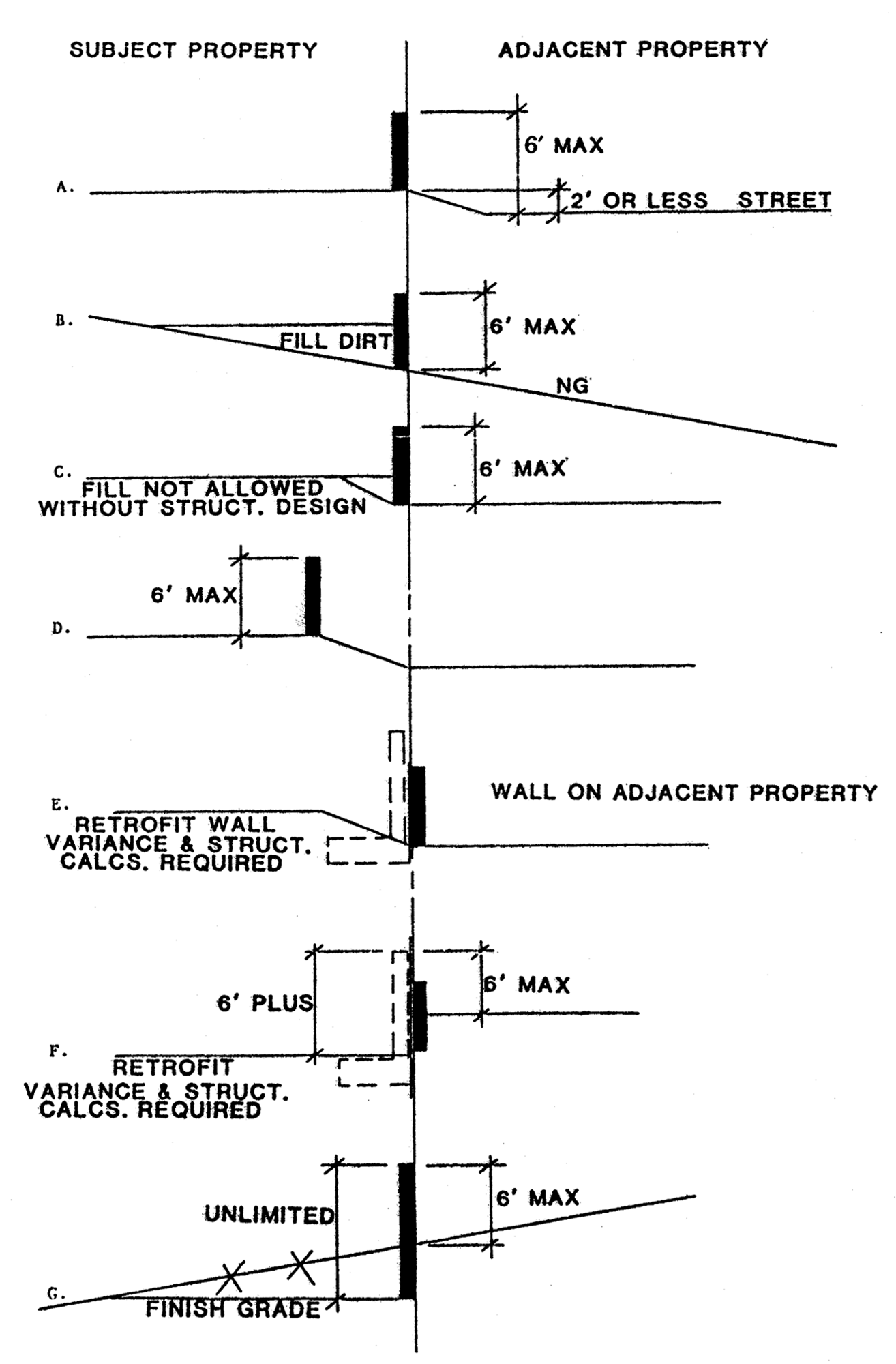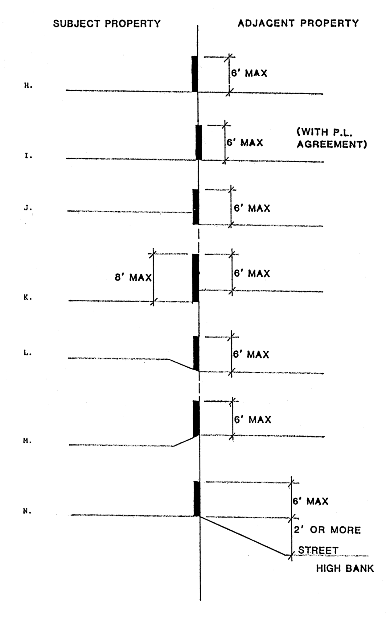 Does not exceed the maximum height of the adjacent solid wall, up to a maximum of six (6) feet;