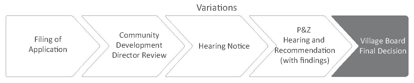 Complete applications for variations must be filed with the community development director.