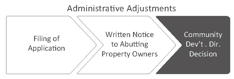 Complete applications for administrative adjustments must be filed with the community development director.