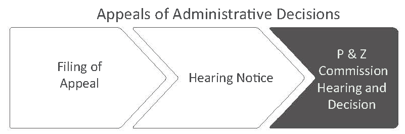 Appeals of administrative decisions may be filed by any person aggrieved by the community development director's or other administrative official's decision or action. The planning and zoning commission is authorized to make determinations about whether individuals filing appeals are "aggrieved" by the decision or action.