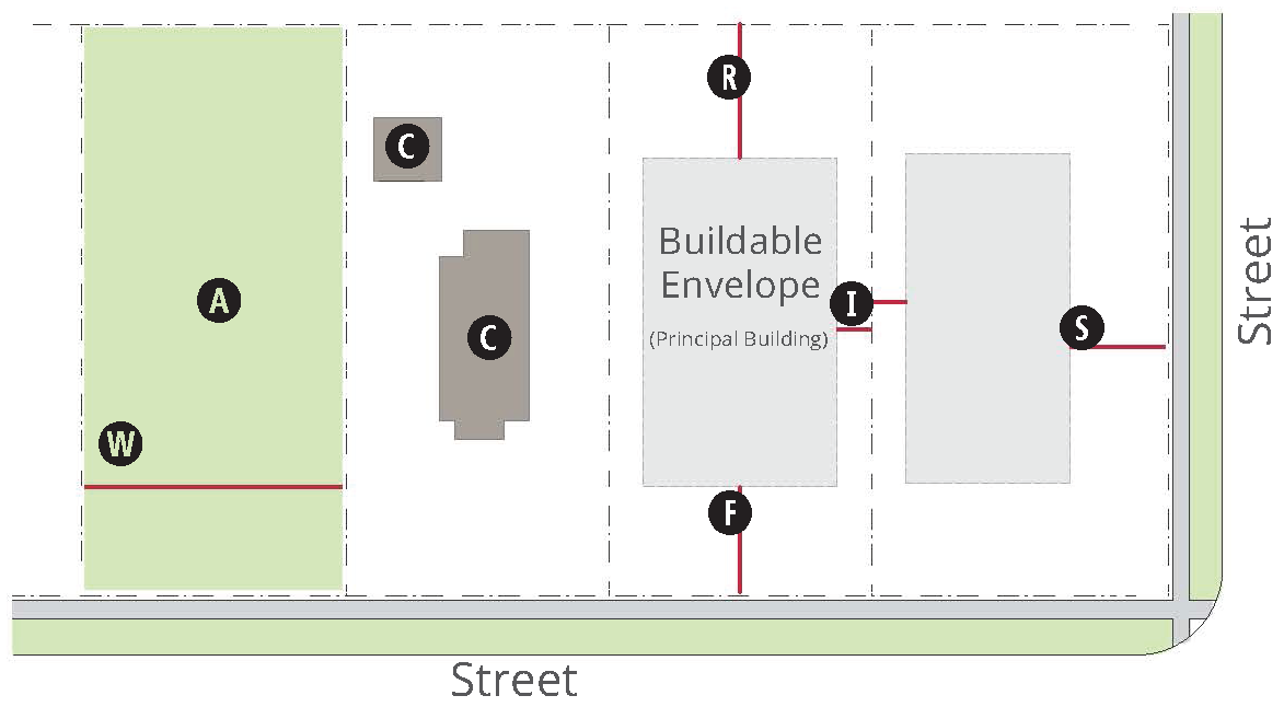 [1] Contextual setback regulations apply to infill development. See section 14.1.9.B