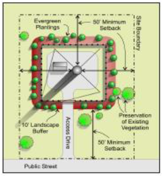 Setbacks adjacent to sensitive uses shall include dense landscaping to provide visual screening and noise attenuation.