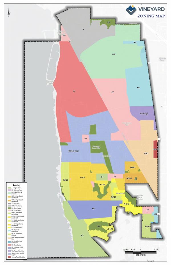 In order to carry out the provisions of this ordinance the Table of Zoning Districts divides the city of Vineyard into the following zoning districts: