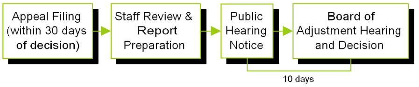 Application. Appeals must be filed within 30 days of the order or decision complained of by filing with the officer from whom the appeal is taken, and with the Board of Adjustment, a notice of appeal that specifies the grounds for appeal.