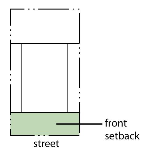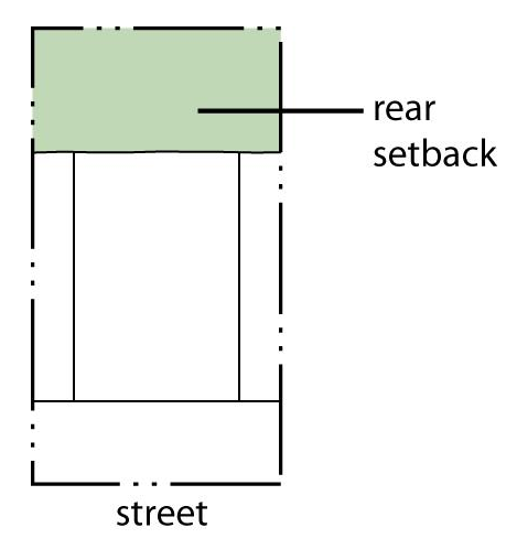 Setback, Rear means the setback required between a building and the rear property line of the lot on which the building is located, extending along the full length of the rear property line between the side property lines.