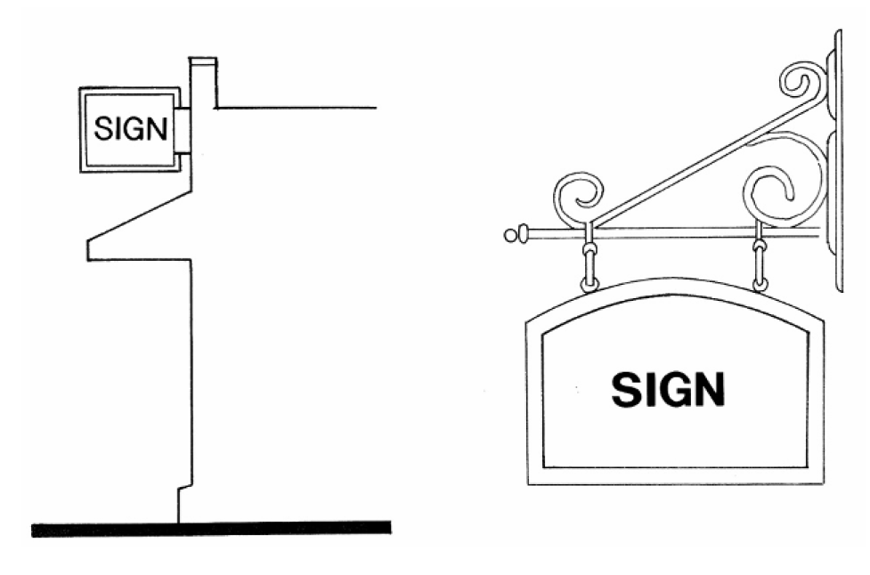 Sign, Projecting means a sign projecting out from, and attached to, the exterior wall of any building, and forming an angle of 30 degrees or more to said wall.