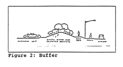 Berm means a mound of earth, or the act of pushing earth into a mound. See Figure 2. Buffer.