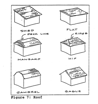 Roof means the outside top covering of a building. See Figure 7, Roof.