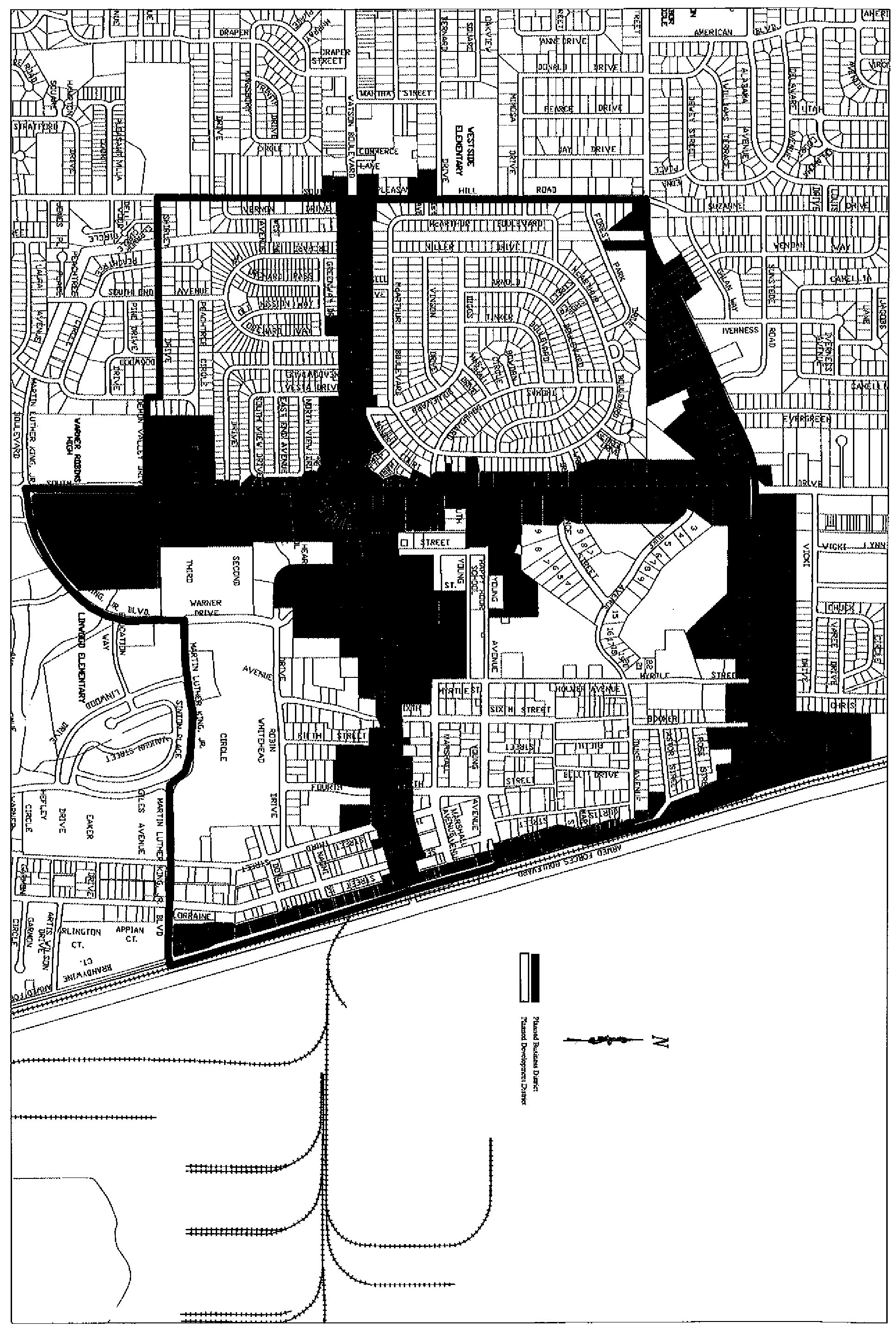 All properties zoned for commercial and industrial use immediately adjacent to the redevelopment area.