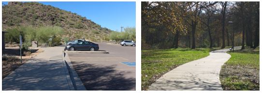 F. Trailheads: Trailheads generally provide four essential purposes: signing, off street parking, restroom facilities and trail access. Any access into the trail system is considered a trailhead. New development that includes public trails, must consider how the public will get to these facilities and how it will coordinate with other plans in the development. Trailheads should be visible, easily accessible and designed to accommodate the type of trail uses allowed. Equestrian trails will require more space than hiking or biking only trails for trailer parking and maneuvering.