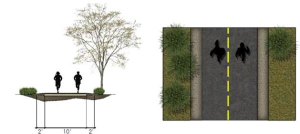 Typical pavement cross sections for an asphalt multi-use trail should consist of the following: