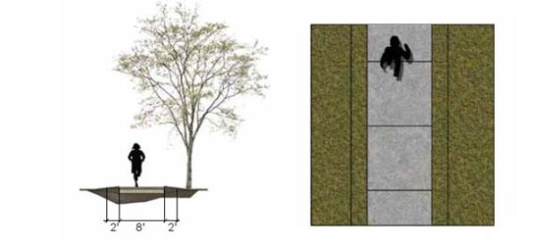 | Improved Pedestrian | 8 ft. trail within a 20 ft. easement | Concrete - weed barrier, 4" thick concrete pavement on top of a 6" depth of 3/4" gravel Or Asphalt with weed barrier, 3" of asphalt on top of 6" of road base |