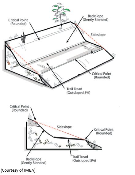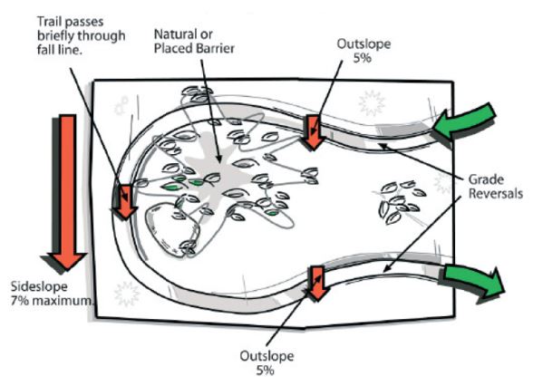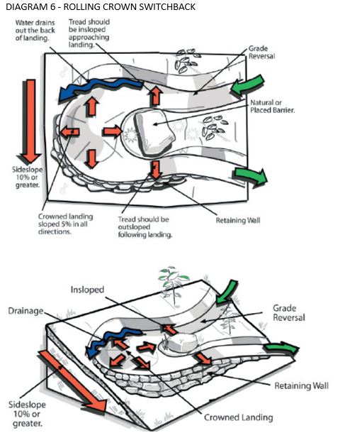 Diagram 1 - Showing Issues with trails constructed without proper cross slope.