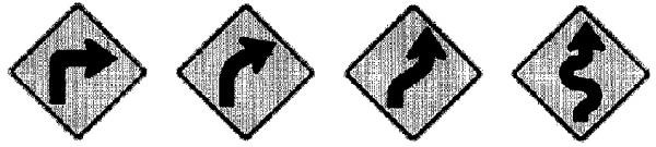 | Turn and curve warning | W1-1, 2, 3, 4, 6 | 450 x 450 | 18 x 18 |