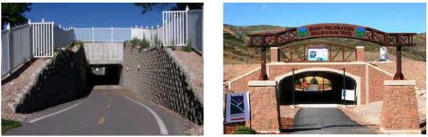 G. Bridges: Bridges can be a great attaction for trail users and most likely highlight a scenic vantage point. In Wasatch County, bridges may be used to span rivers, streams, canals, roadways, and steep torpographic features.