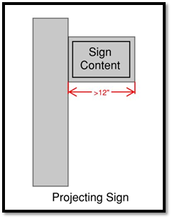 Projecting signs means a sign that is attached to and projects more than twelve (12) inches from a building facade or wall.