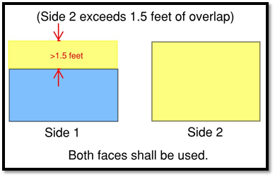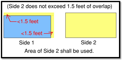 If two (2) faces placed back-to-back contain no more than one and one-half (1½) feet of overlap between one another, the larger of the two (2) faces shall be used in the calculation of sign area.