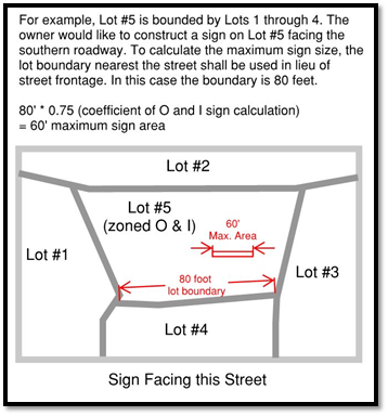 Whenever a lot is situated such that it has no street frontage on any lot boundary and an applicant desires to install on such a lot a sign that is oriented toward a street, then the total sign surface area permitted on that lot shall be the sign surface area that would be allowed if the lot boundary closest to the street toward which such sign is to be oriented fronted on such street. The applicant shall be restricted to using only one (1) street and the closest lot boundary to this street for determining the total permitted sign surface area. However, the applicant shall be given the opportunity to determine the one (1) street used in the calculation.
