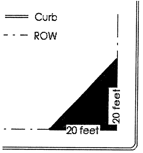 way line, thence diagonally to a point on the other right of way line 20 feet from