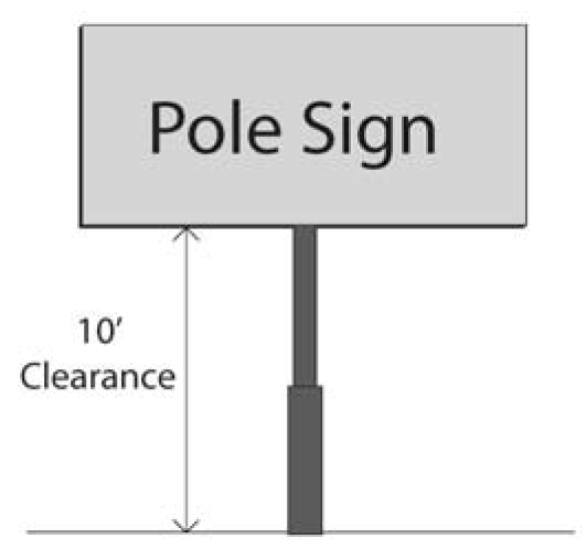 Sign, Freestanding: A ground sign that is mounted on free standing poles or other supports such that the bottom edge of the sign face is ten feet or more above grade.