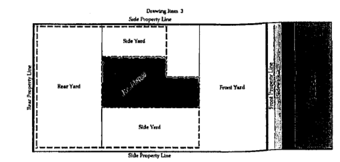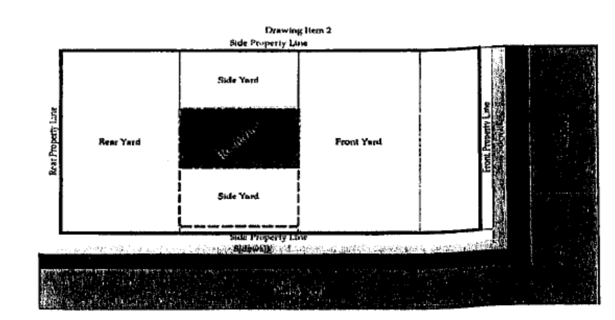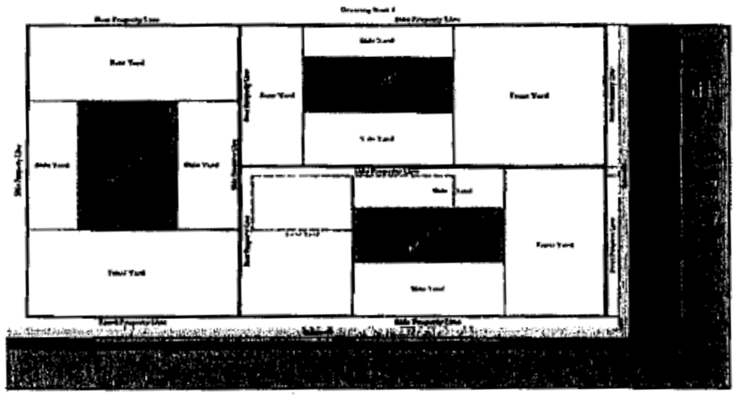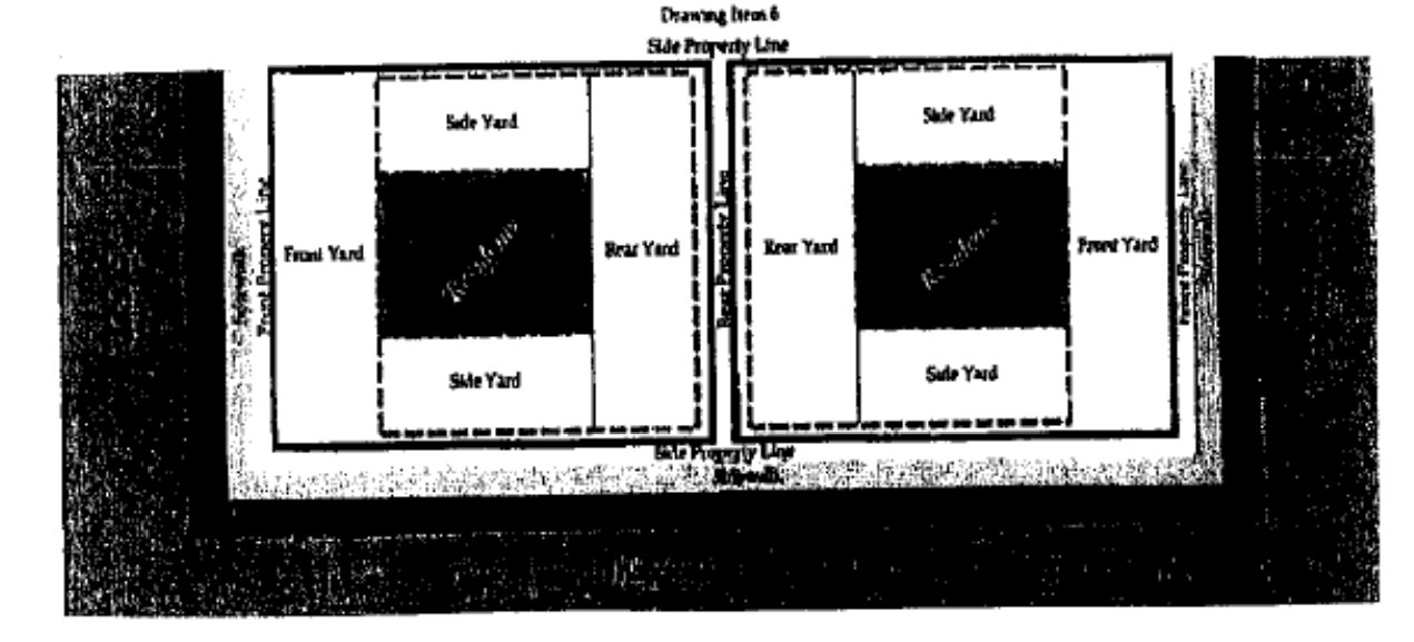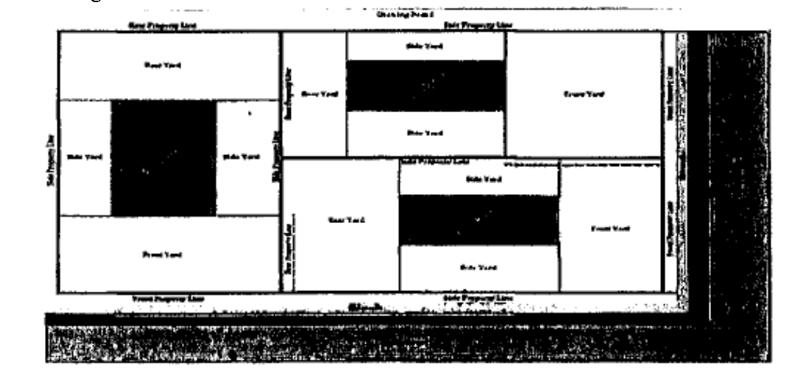 Actual building setback lines in the area including front yards, rear yards, side yards, interior side yards or comer side yards.
