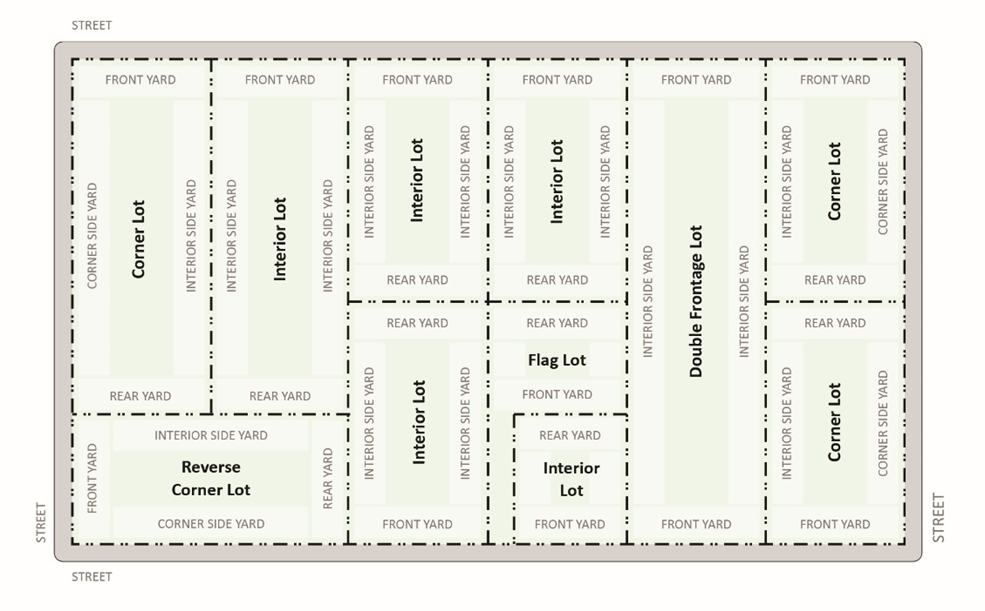 Corner Lot: A lot situated at the intersection of two streets, the interior angle of such intersection not exceeding 135 degrees. See Figure 13.02-16 Lot Diagram.