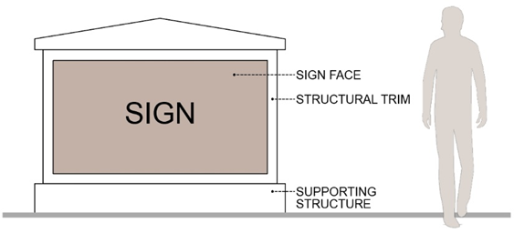 Sign Components: The sign face, the supporting structure, and the structural trim of a sign. See Figure 13.02-26 Sign Components.