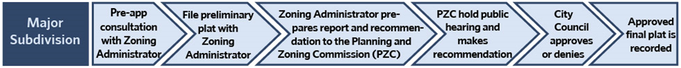 Major Subdivision Procedure. Approval of a major subdivision requires a pre-application consultation, preliminary plat approval, and final plat approval or combined preliminary and final plat approval. See Figure 3.03-2 Major Subdivision Application Procedure.