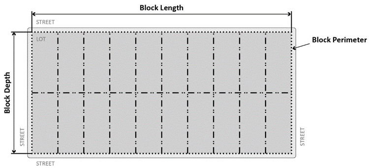 Block Configuration. The shape of a block must be generally rectangular when feasible, but may vary based on topography, natural features, or other site constraints if a rectangular layout would create an undue hardship. Blocks must be two lots deep when feasible. Residential blocks must have sufficient width to provide for two tiers of lots of appropriate depths. Variances to the prescribed block width are permitted in blocks adjacent to arterial roads, railroads, public open spaces, or waterways.