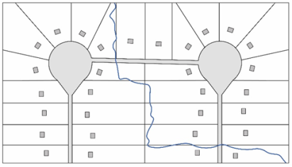 Lot Configuration. The shape of a lot should be rectangular wherever feasible, but may vary based on topography, natural features, or site constraints if a rectangular layout would create an undue hardship. Lots at the end of culs-de-sac or one-way streets may flare out from the front lot line to capture available land.