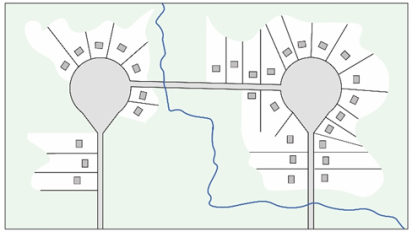 The establishment of a series of culs-de-sac, U-shaped streets, or short loops entered from and designed generally at right angles to, such as a parallel street, with the rear lines of their terminal lots backing onto the arterial road. This type of access could only be provided if no other options are feasible.