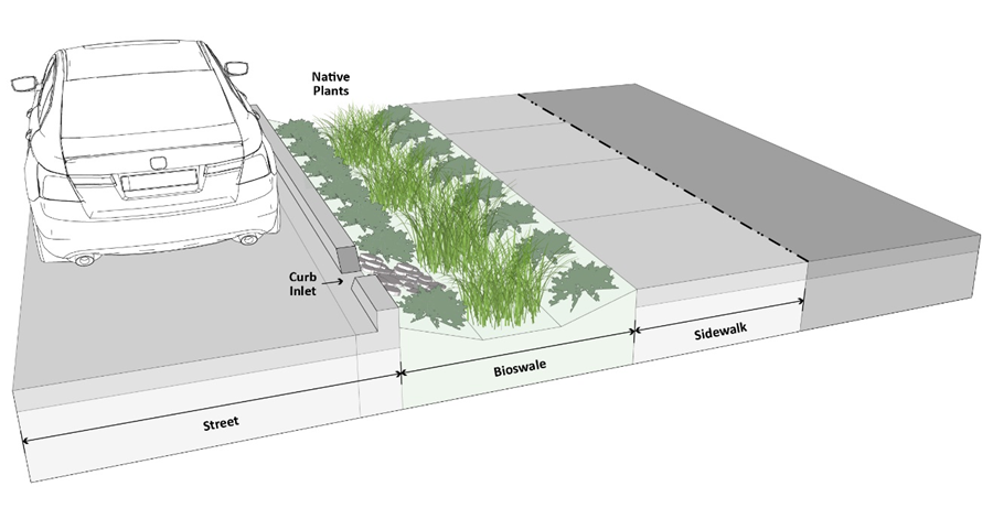 Bioswales, bioretention planters, or other stormwater management best management practices are encouraged to be installed within all new parkways.