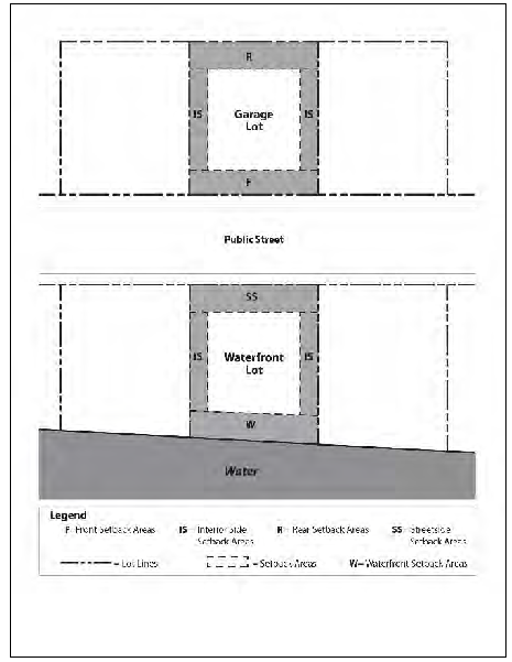 Lot, waterfront: A lot that abuts the Wisconsin River, Big Rib River, or Eau Claire River. Waterfront lots have a waterfront yard, a street yard, and a side yard.