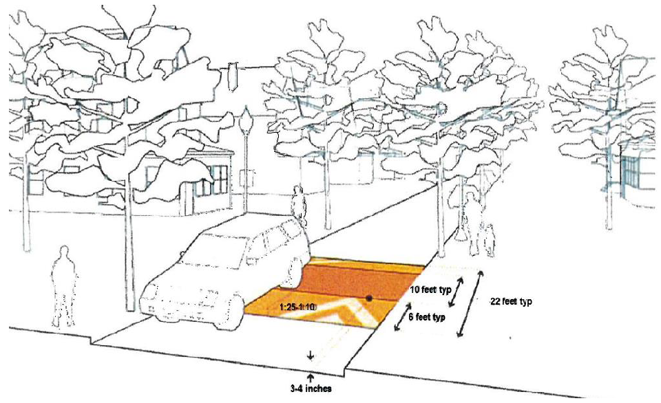 Speed table ramp slopes shall not exceed 1:10 or be less steep than 1:25.