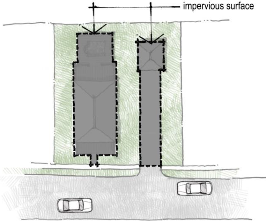 Impervious Surface. Impervious surface is the area of the lot that is permitted to be covered by buildings, including both principal structures and accessory buildings, paved areas such as swimming pools, driveways, uncovered porches or patios, or solid decks.