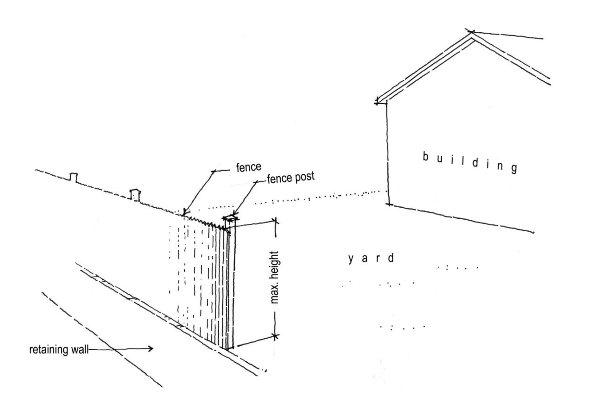 Fence or Wall. The height of fences or walls shall be measured as the vertical distance between finished grade on the highest side of the fence or wall to the top of the fence or wall, rather than to the top of the fence post or columns.