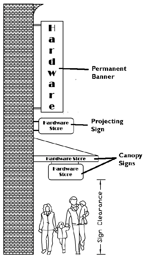 The bottom of any pedestrian sign shall be at least eight (8) feet above any pedestrian walkway.